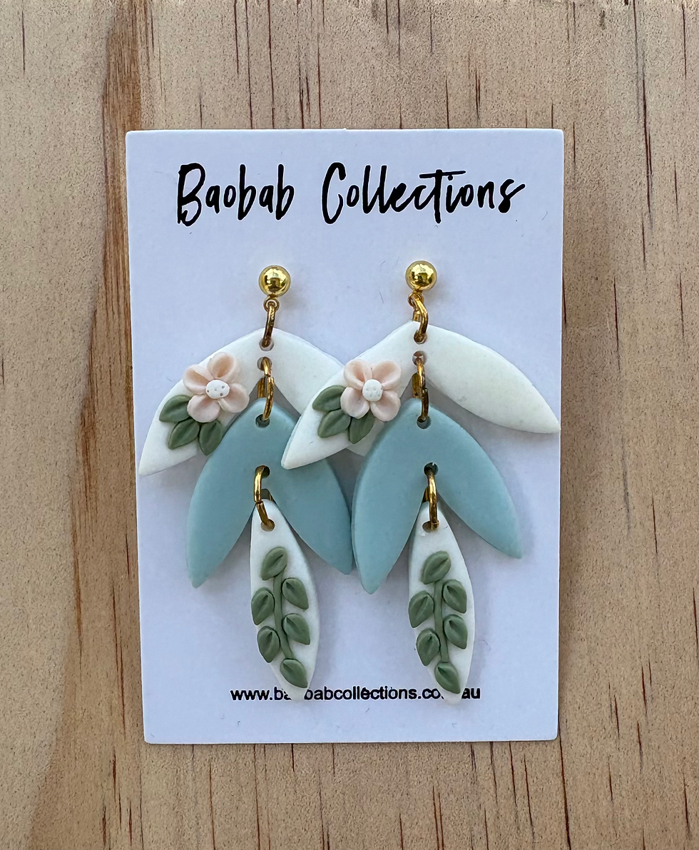 Blue leaves with flowers stud earrings LE11-1-2